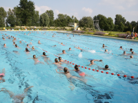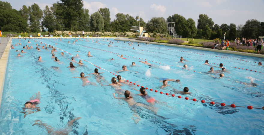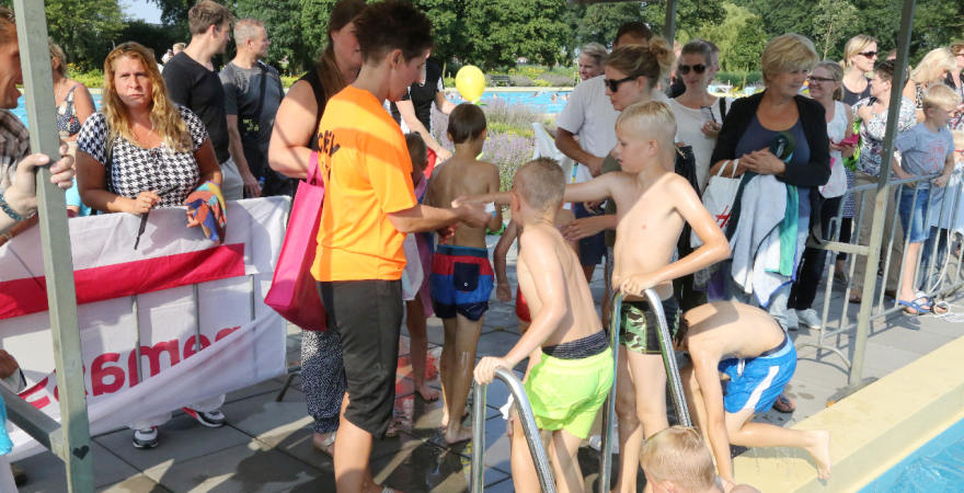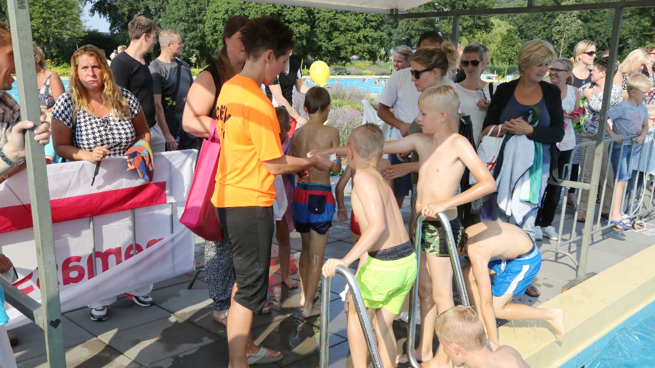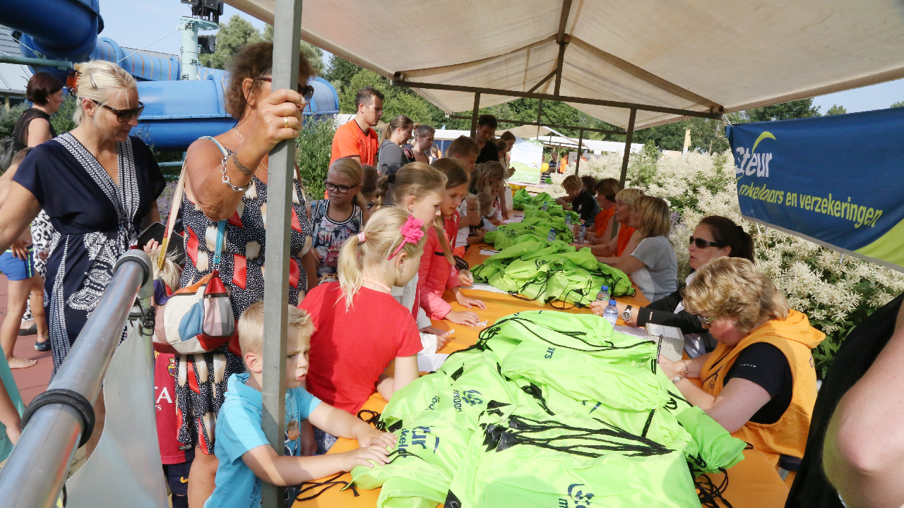 Bij de voorinschrijving waren er al 200 aanmeldingen. Mede door het mooie weer kwamen er honderden zich nog inschrijven, zodat de ver-wachting is dat de 1.000 zwemmers gehaald gaat worden.