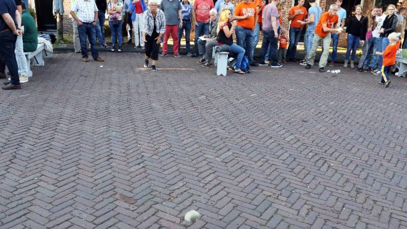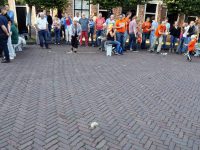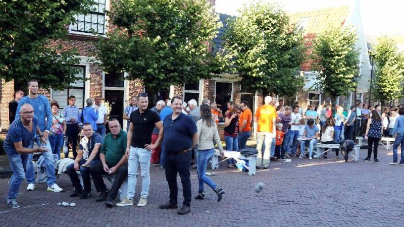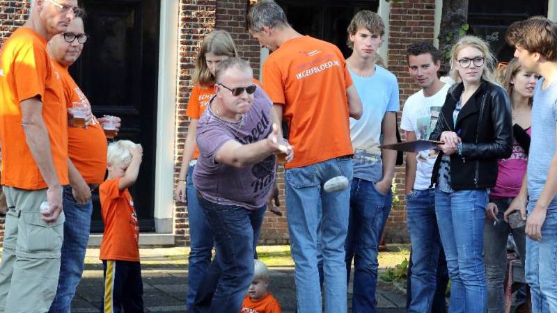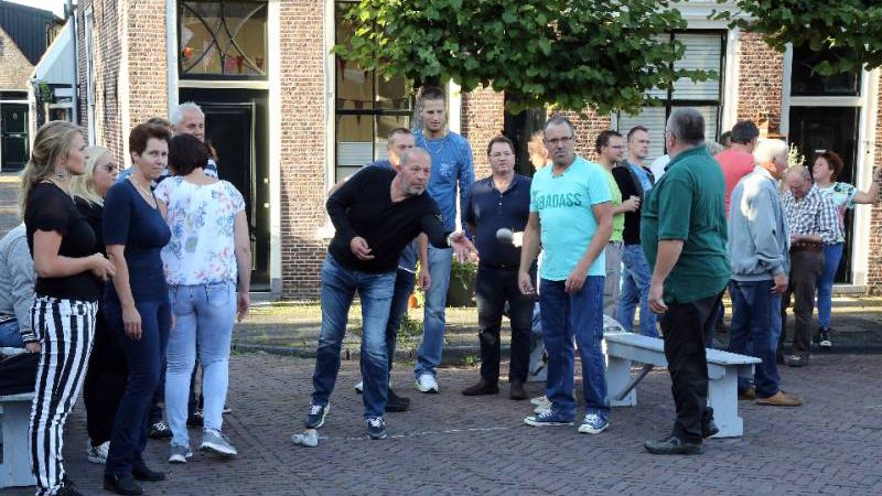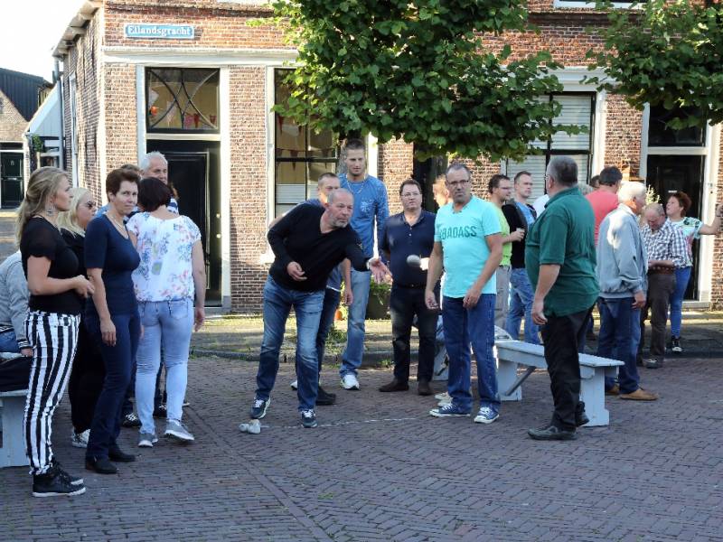 Fanatiek werd door de steenwerpers om de hoogste eer gestreden. Er heerste een gezellig en sportief sfeertje op de Eilandsgracht voor het terras van De Burghwall.