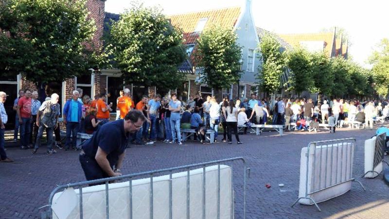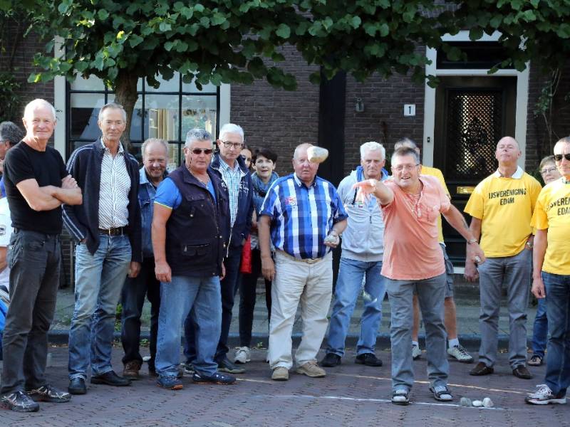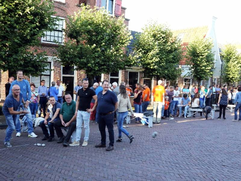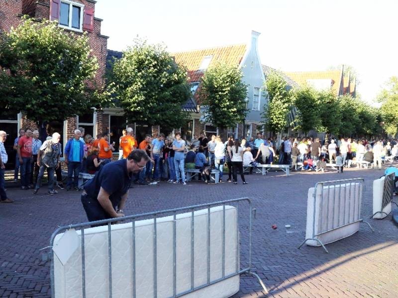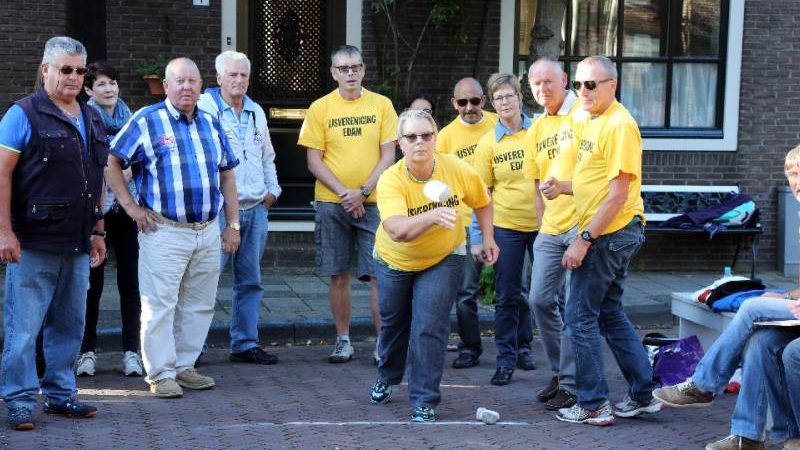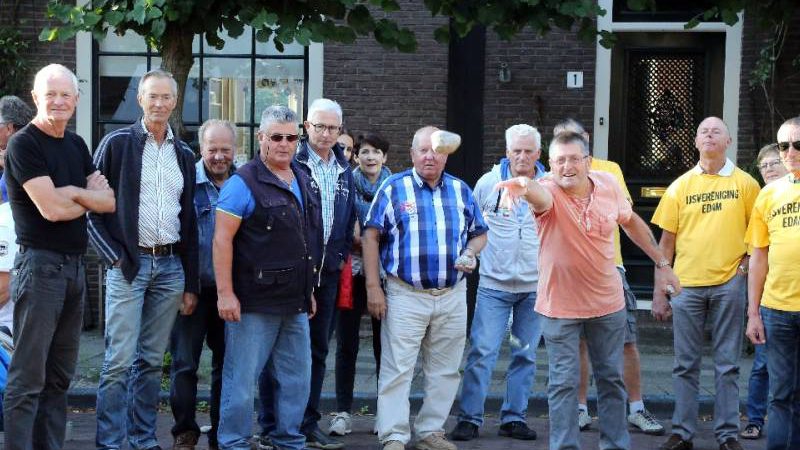 Steenwerpen op vrijdag van kermis in Edam