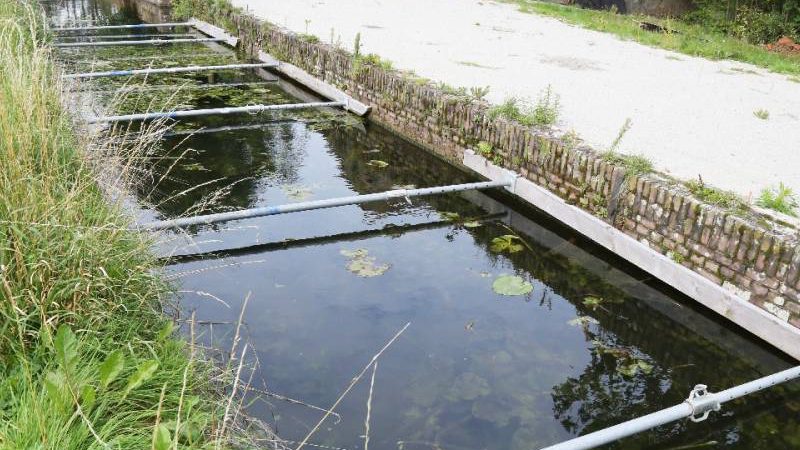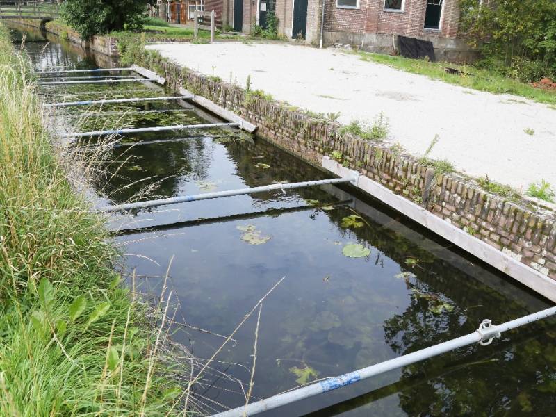 Als de nieuwe loods weer opgebouwd is kunnen de trekstangen, die boven het slootje hangen, weer verwijderd worden.