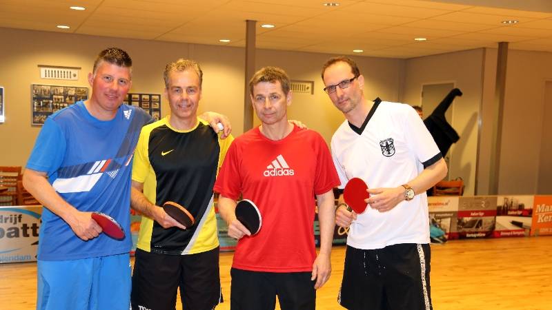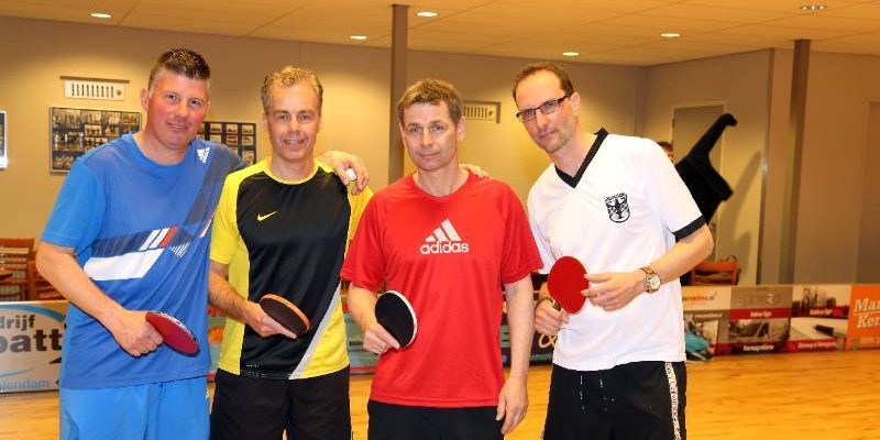 Onder het genot van een drankje en hapje werd de hele middag tafeltennis gespeeld. Winnaar was het team met Big Willem Jonk, Simon Jonk, Carlo Jonk en Frank Karregat.