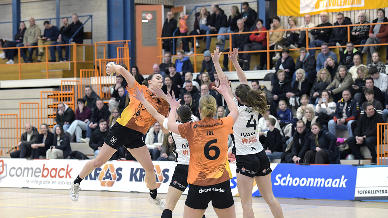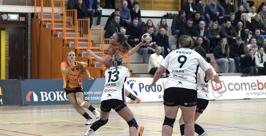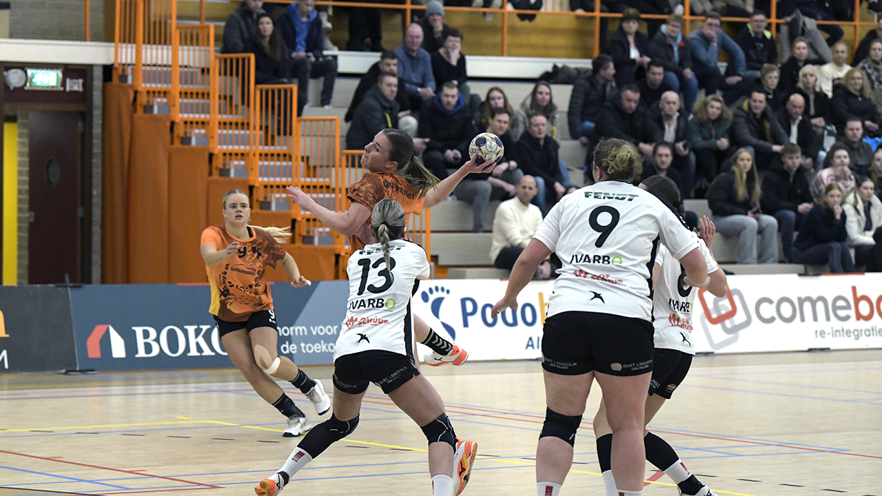 Bont heeft haar dorpsgenote qua trainingsuren alleen op vrijdag tot haar beschikking, doordeweeks traint Tuip immers op de Handbal-Academie. ,,Dat is een afweging die je maakt. Maar wij zijn blij dat zij ervoor gekozen heeft om bij ons te komen, het is mooi voor de club dat een speelster de weg terugvindt”, aldus Bont, die ook keepster Cindy van Horssen – overgekomen van SEW – zag debuteren. De aanloop naar de competitiehervatting werd tevens benut om de lijnen weer duidelijk uit te zetten, nadat met thuisverlies tegen DSVD was geëindigd. ,,We hebben afspraken gemaakt, met de verwachting dat iedereen daaraan gaat bijdragen. We zijn qua positie nog niet zeker van de play-offs, dus we moeten het heft in handen nemen en niet afwachten wat de vorm van de tegenstander is. Ook wat betref slotfases van wedstrijden hebben we duidelijkheid geschapen, wie wanneer de leiding moet nemen. We hopen dat we daardoor scherpte hebben n de laatste fase van de wedstrijd in plaats van onzekerheid.” Zondag wacht PSV-uit. ,,Een wedstrijd waarin karakter tonen vereist is.”