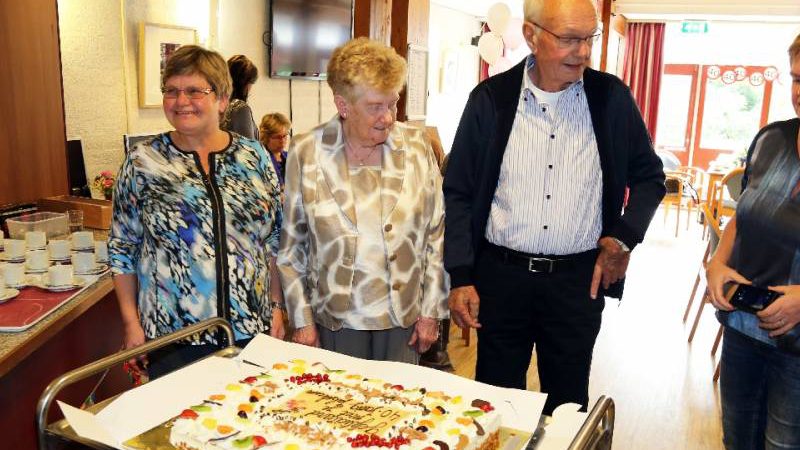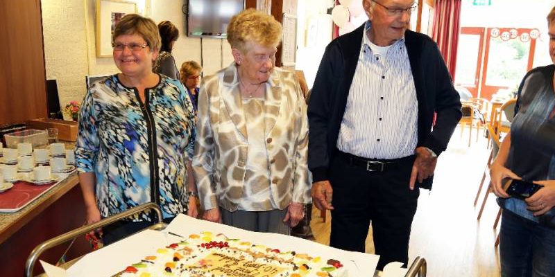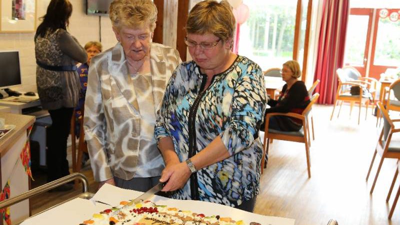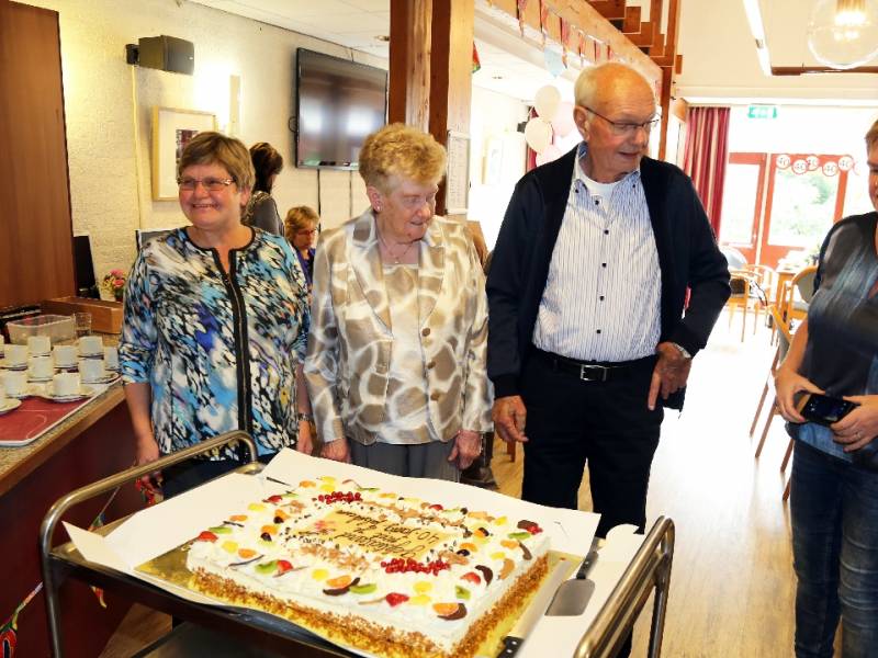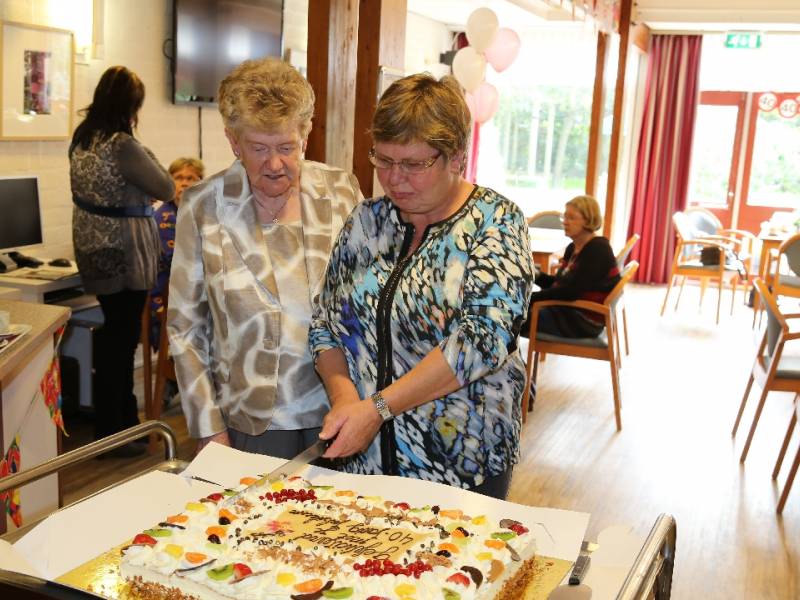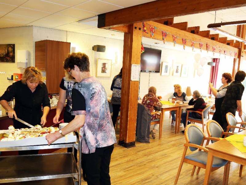 Alle bewoners en het personeel kregen taart aangeboden bij de koffie tijdens deze feestelijke middag.