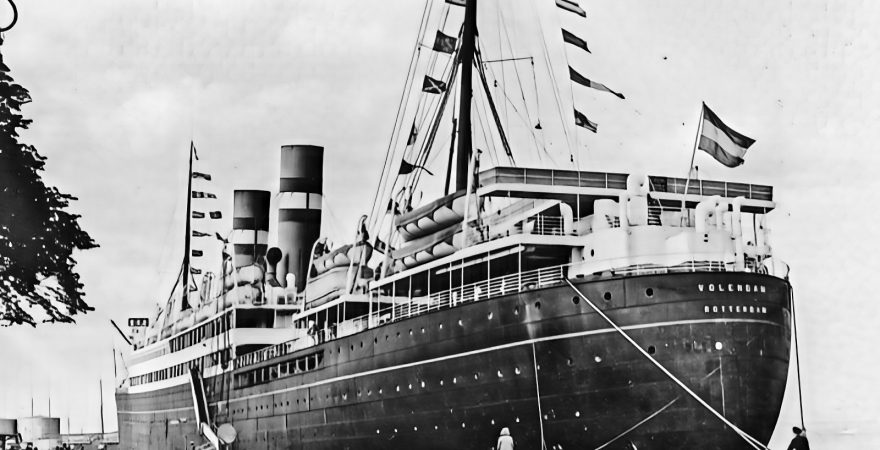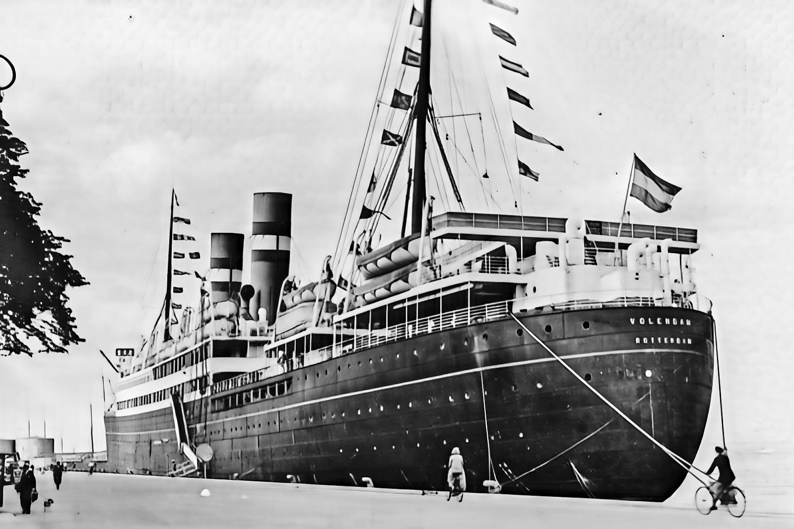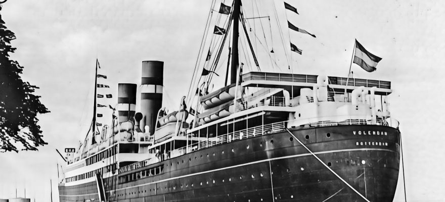 Lang voordat moderne cruiseschepen de naam Volendam droegen, voer er al een oceaanliner met die naam over de Atlantische Oceaan. In 1922 nam de Holland America Line het passagiersschip SS Volendam in dienst. Het schip werd gebouwd door de beroemde scheepswerf Harland & Wolff in Belfast, dezelfde werf waar tien jaar eerder ook de legendarische Titanic te water werd gelaten. De Volendam was vernoemd naar het vissersdorp, omdat dat in die tijd internationaal bekendstond als symbool van ‘typisch Hollands’. Jarenlang voer de oceaanliner tussen Rotterdam en Noord-Amerika en vervoerde duizenden reizigers, emigranten en toeristen. Later kreeg het schip ook een rol in het vervoer van militairen naar Nederlands-Indië, waarbij volgens de overleveringen ook verschillende Volendammers aan boord waren. Over de geschiedenis van het schip zijn gegevens bewaard gebleven in verschillende maritieme archieven en databanken, waaronder de Stichting Maritiem-Historische Databank. Het meest dramatische hoofdstuk uit de geschiedenis van de Volendam speelt zich af in de zomer van 1940. Midden op de Atlantische Oceaan wordt het schip, met honderden geëvacueerde kinderen aan boord, getroffen door twee Duitse torpedo’s. Wat daarna gebeurt, leest als een wonderlijk oorlogsverhaal.