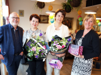 Zij zijn namelijk 40 jaar in het Nicolaashof werkzaam. De twee jubilarissen werden lovend toegesproken door Dick Twisk (manager Zorg en Dienstverlening) en Margreet Brouwer (leidinggevende Thuiszorg).