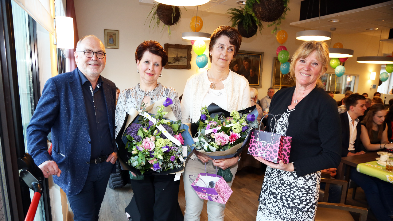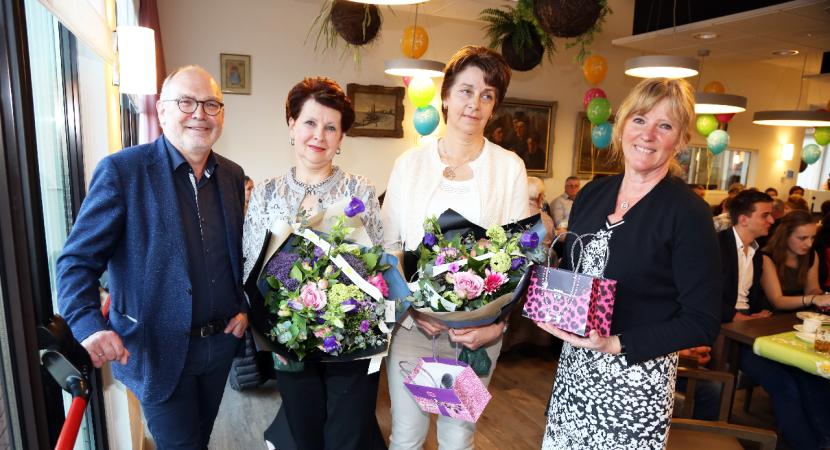 Bloemen en veel kado’s kregen de jubilarissen aangeboden. “Ze hebben hart voor de mens. Hart voor de zorg en werken met passie” werd verteld. Het werd een gezellige feestavond in het Nicolaashof.