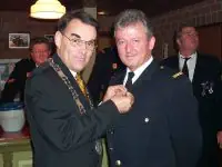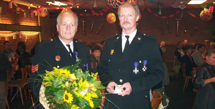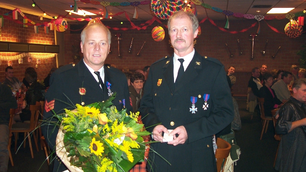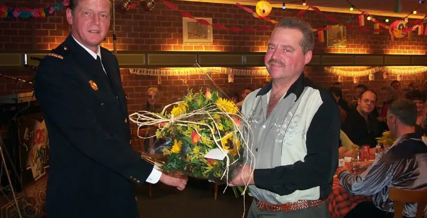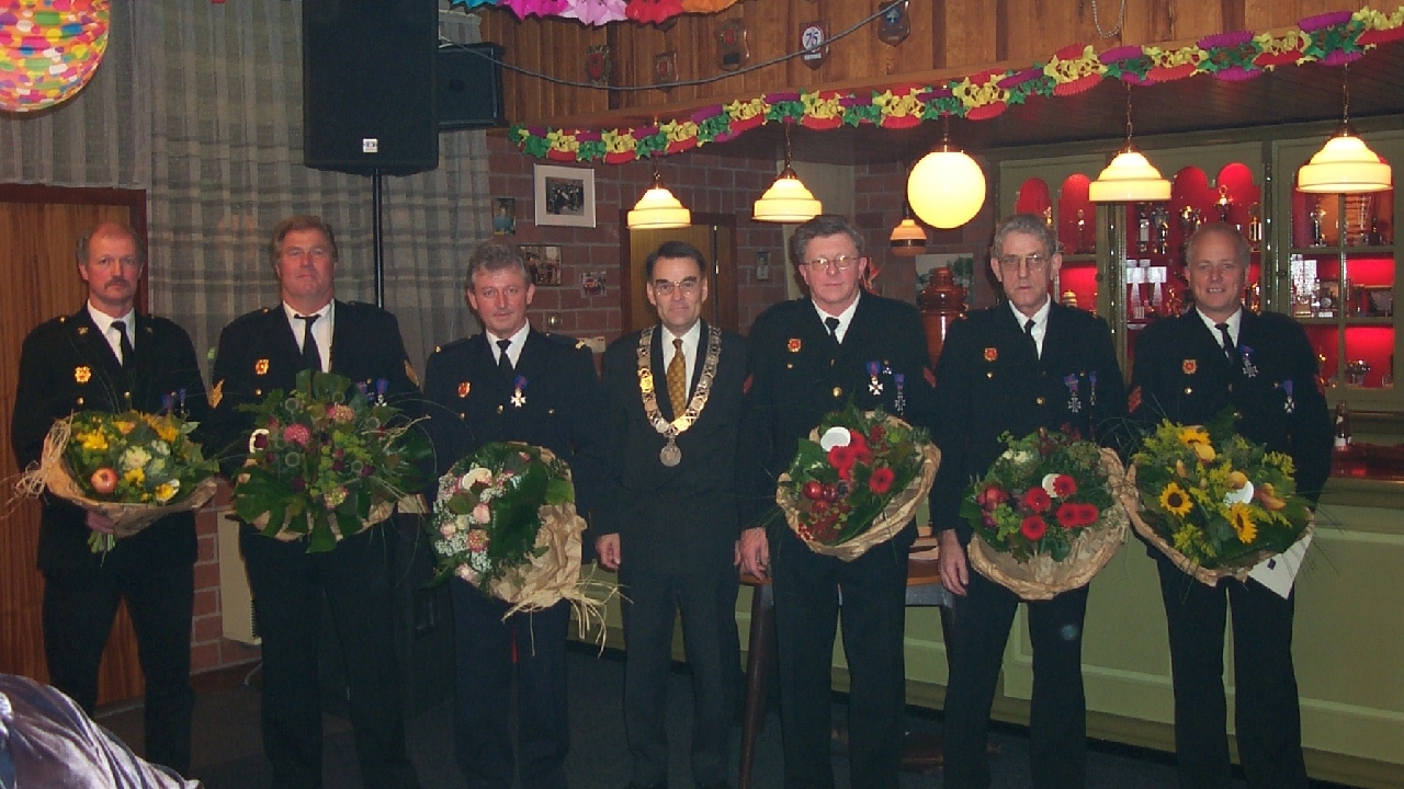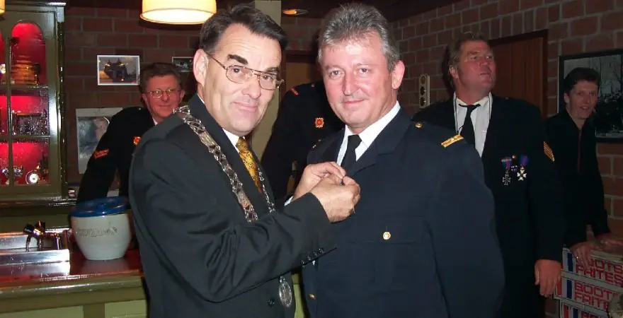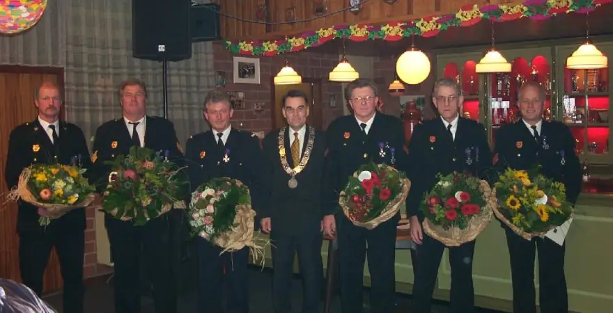 De Vrijwillige Brandweer Volendam vierde destijds een bijzondere feestavond met zes jubilarissen en vijftien diploma’s. Burgemeester IJsselmuiden speldde de medailles persoonlijk op, als dank voor de jarenlange inzet van de mannen die altijd paraat staan voor hun dorp.