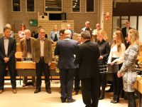 Bob v.d. Meulen en Nico Karhof kregen een lintje opgespeld en een bijbehorende oorkonde aangereikt. Voor hun echtgenotes waren er mooie bossen bloemen. Van de raadsleden, familieleden en belangstellenden kregen ze een welverdiend applaus.