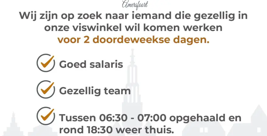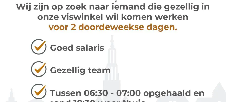 Wij zijn op zoek naar iemand die gezellig in onze viswinkel wil komen werken voor 2 doordeweekse dagen.