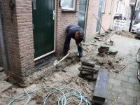 Donderdagmiddag waren Marco van der Gracht en twee elektriciëns aan het werk in de steeg naast de souvenirwinkel van Albert en Gaar Jonk-Keizer. Hier werd in deze donkere steeg verlichting aan de muur bevestigd, zodat er beter toezicht gehouden kan worden.