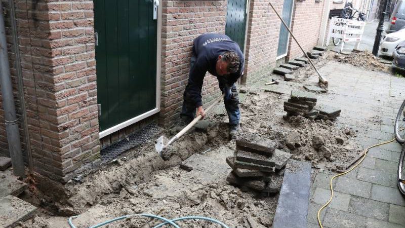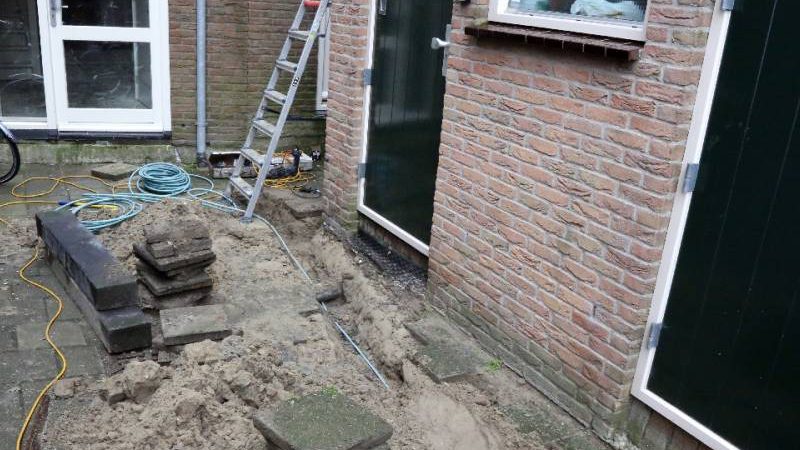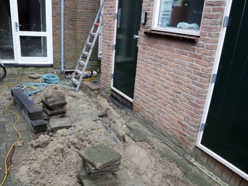 Naast het parkeerterrein achter “Le Pompadour” vond graafwerk plaats voor het leggen van de kabels voor de verlichting.