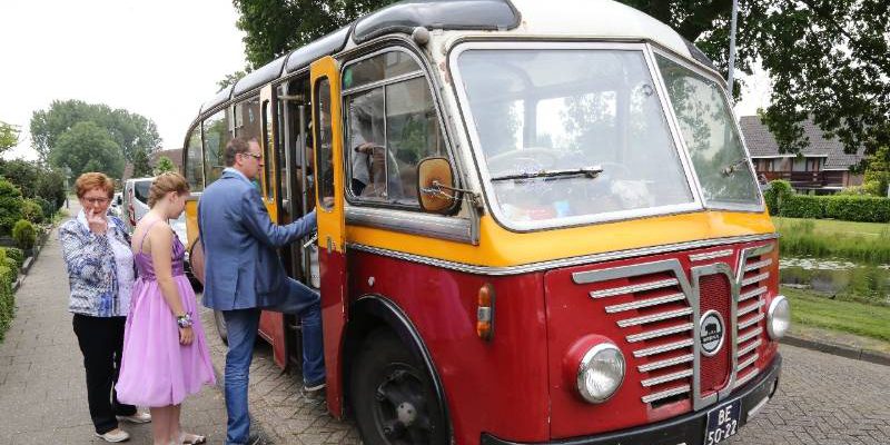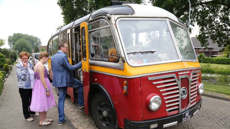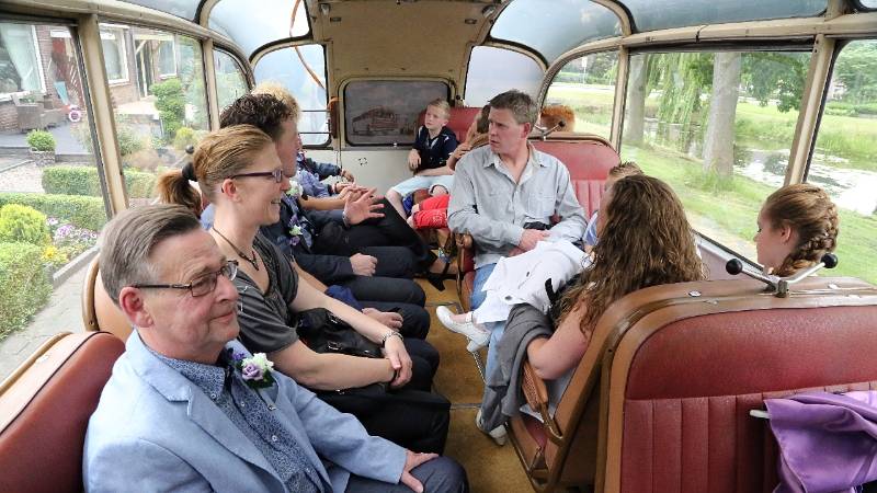 Vervoer met antieke bus naar trouwerij