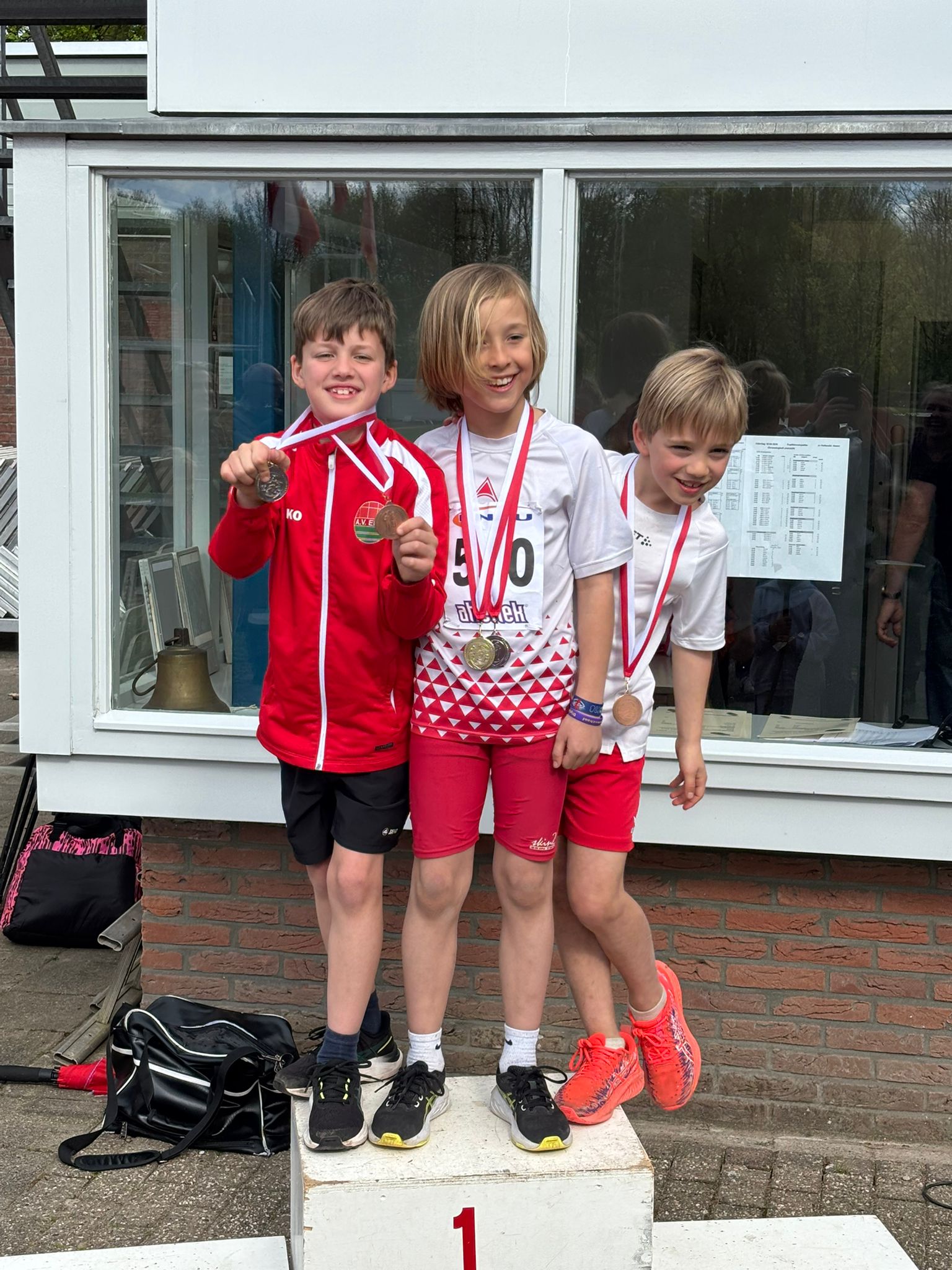 Max Bergsma werd derde op de meerkamp bij jongens U11. Duke Knook pakte zilver op de meerkamp bij jongens U9 en brons op de 600 meter. Bij de meisjes U11 greep Jinte Out twee ereplaatsen: derde op de meerkamp én op de 1000 meter. Debutant Sem Tol eindigde bij de jongens U8 als vierde, ook dat een knappe prestatie voor een eerste wedstrijddag.
