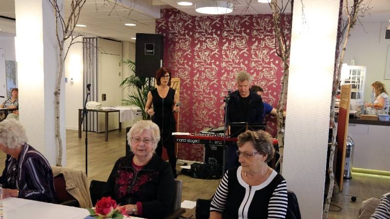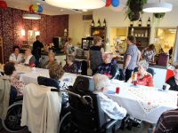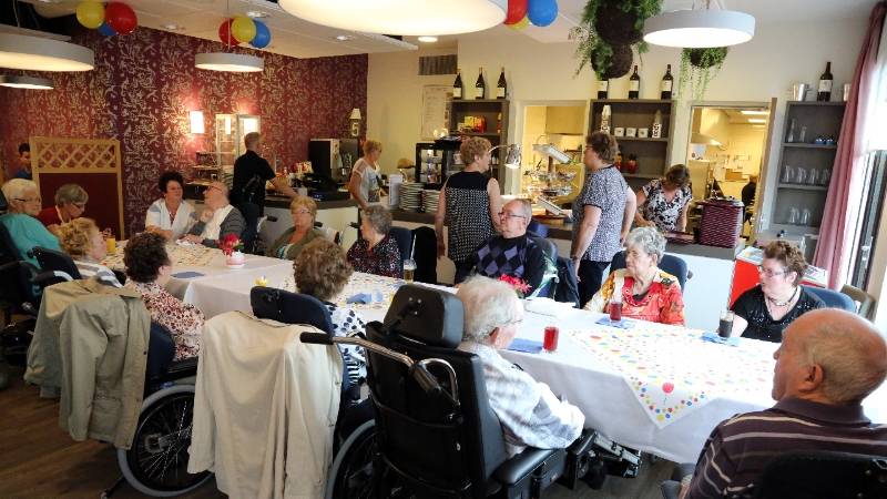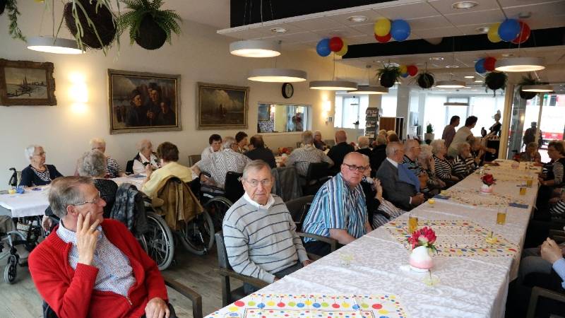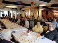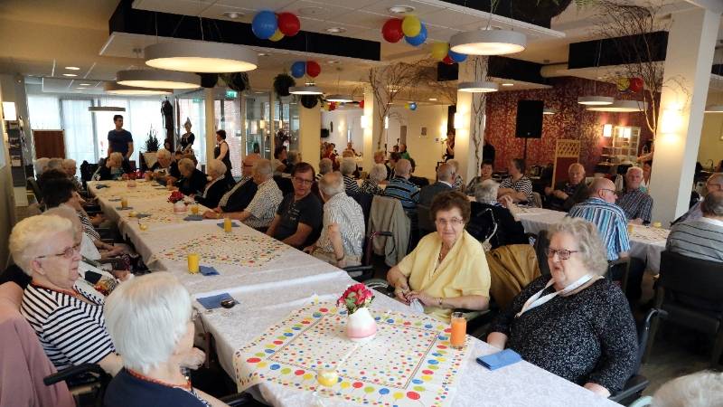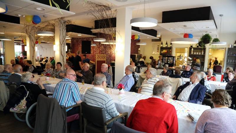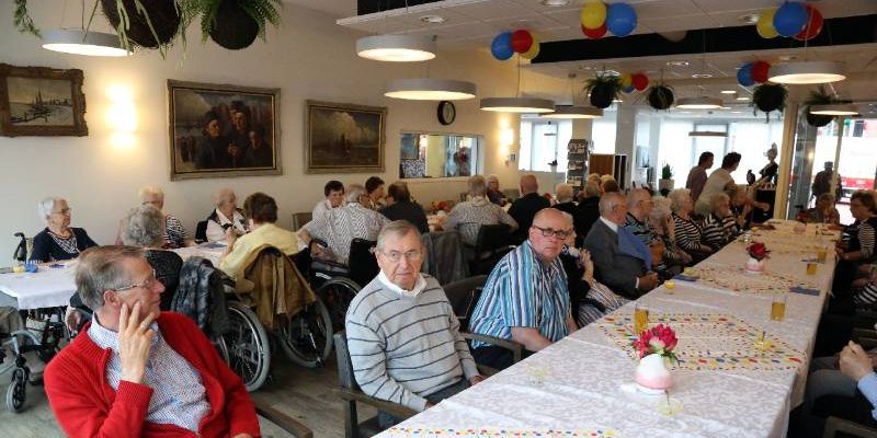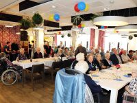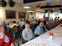 In het restaurant en in de activiteitenzaal zaten 150 senioren uit het Nicolaashof, Kloosterhof en de Gouwzee gezellig bijeen. Zij kregen koffie met dikke koek geserveerd met hapjes/drankjes.