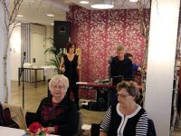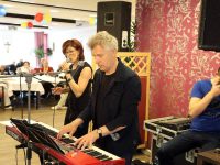 Om 11.30 uur was er een optreden van Carola Smit en Dick Plat. Daarna trad ook Kees Schilder (Kos) op. Een heerlijk vismaal werd geserveerd met rode kool, bietjes, gestoofde appeltjes, butter-en-eek en als toetje een sorbet-ijsje.