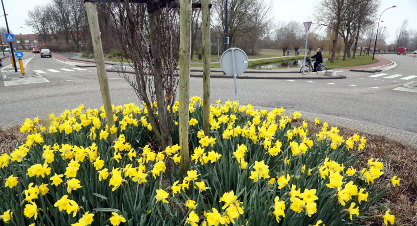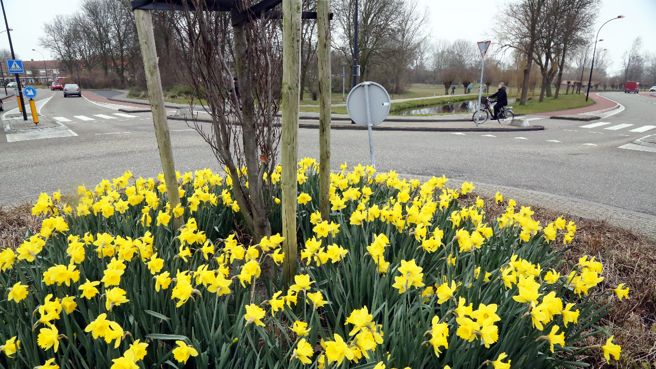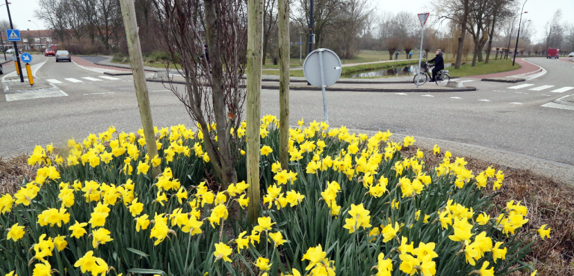 De winter loopt naar z’n einde en de lente kondigt zich al aan. Op 20 maart is de officiële start van de lente. Om alvast wat kleur en fleur te krijgen zijn midden op alle rotondes in de gemeente narcissen geplant door medewerkers van de Plantsoenendienst.