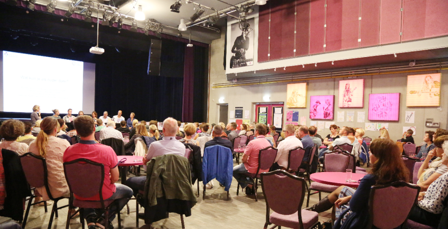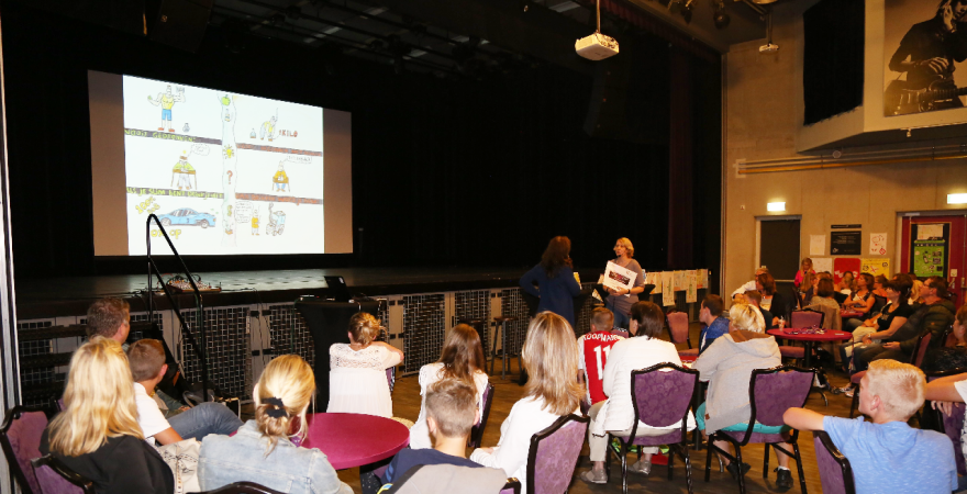 Ruim 200 ouders en brugklassers waren naar PX gekomen. Voor de kinderen was er een speciaal programma met een quiz. De ouders kregen in de grote zaal voorlichting en tips. Zij konden vragen stellen aan een panel met deskundigen uit het onderwijs en hulpverlening.