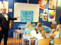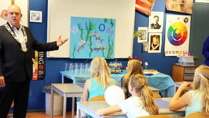 Donderdagmorgen bracht burgemeester Van Beek een bezoek aan het Don Bosco College om een les bij te wonen van de brugklas VMBO. Hier vertelde hij over de Watersnood 1916.