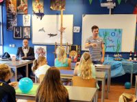 De VMBO-klas van het DBC werkt mee aan het project “Waterwolven” in het kader van de herdenking van de Watersnood in 2016. De beeldend kunstenaar Rob Cerneüs jr. uit Warder gaf uitleg over het ontwerp voor ‘n waterwolf, die gemaakt wordt.