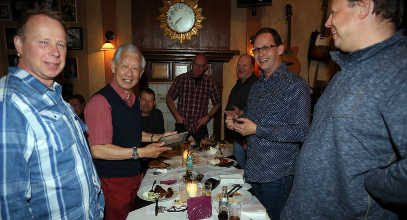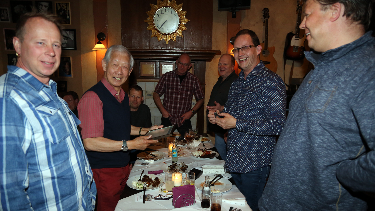 Woensdagavond kwamen de bestuursleden van Schietvereniging De Vrijheid voor een gezellig samenzijn bijeen in Café De Harmonie aan de Voorhaven. Wil Tjoa was naar deze avond met “sliptong eten” in De Harmonie “gelokt” vanwege een huldiging.