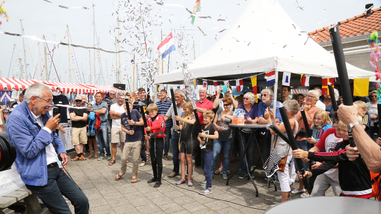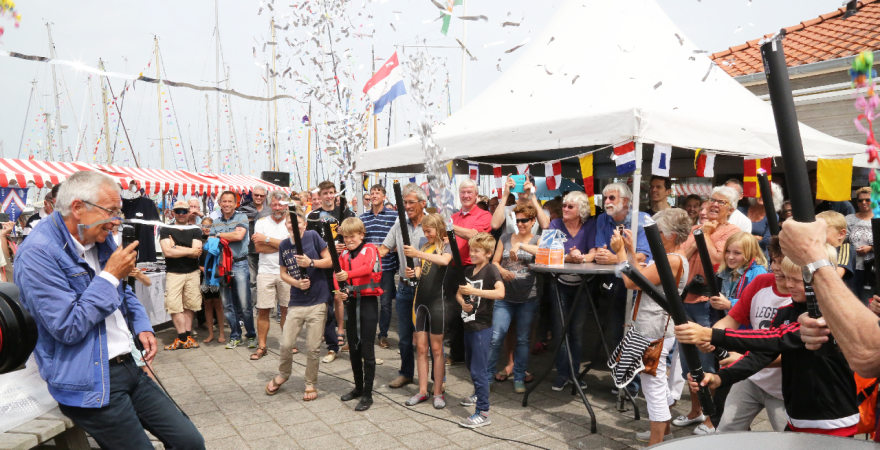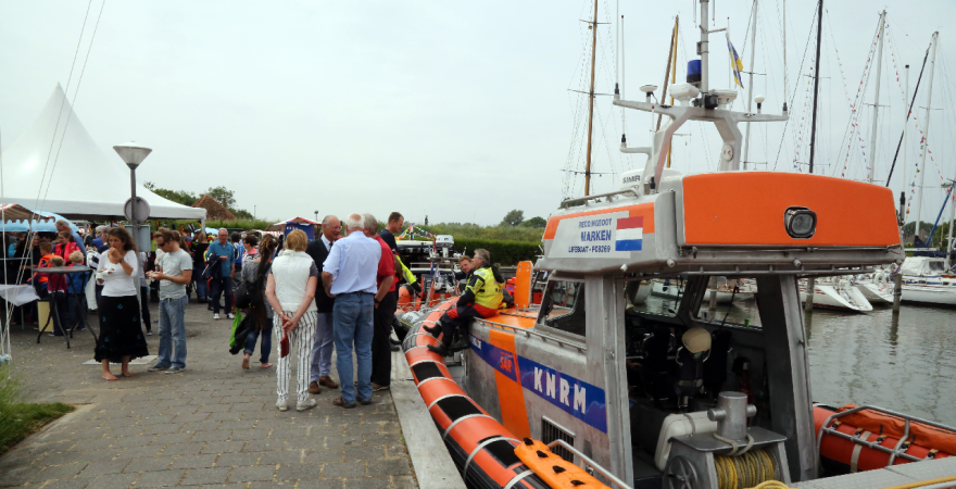 Zaterdag was de grote dag met een feestelijk programma voor jong en oud. Op de jachthaven aan het Galgenveld vond een nautische markt plaats met ook een poffertjeskraam, visroker, ijskraam, springkussen, portrettekenaar en een stand van de KNRM met een aantal boten.