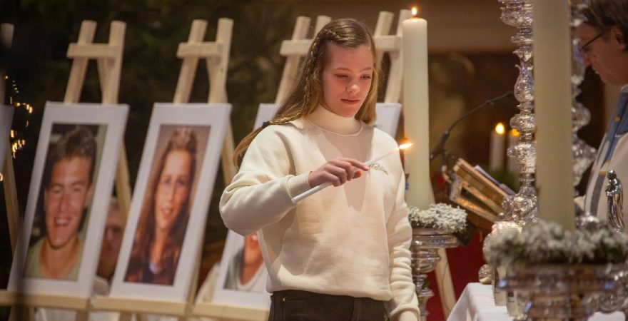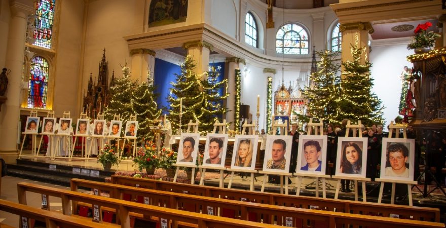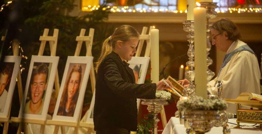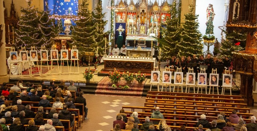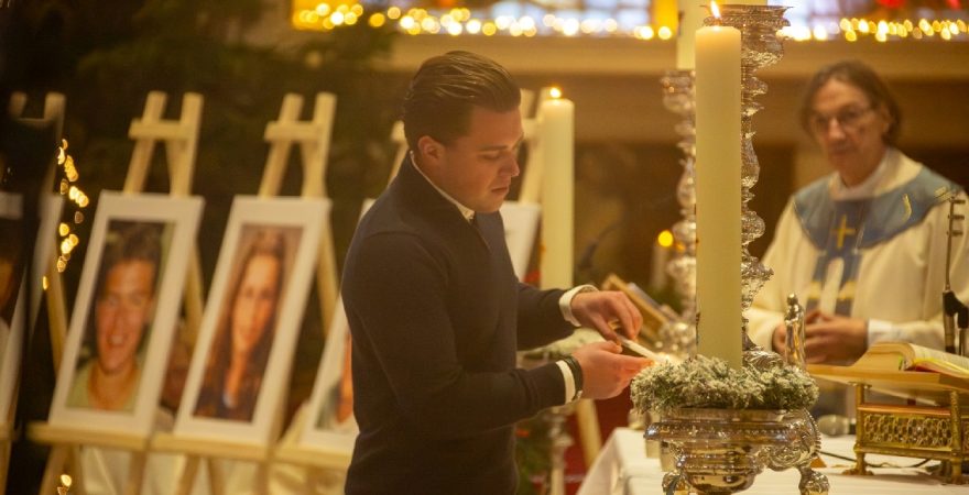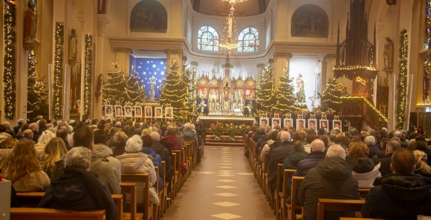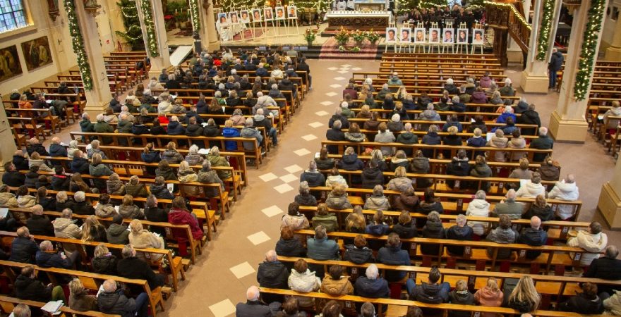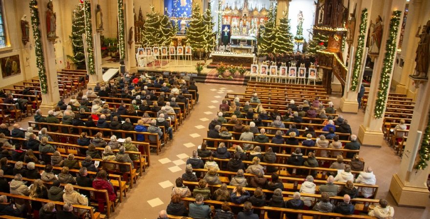 De Vincentiuskerk was tijdens de herdenkingsmis voor de Nieuwjaarsbrand van 25 jaar geleden goed gevuld met betrokkenen. Jong en oud kwamen samen om de viering bij te wonen. Het werd een indrukwekkende mis, waarin de veertien slachtoffers die de ramp destijds niet hebben overleefd, werden herdacht.