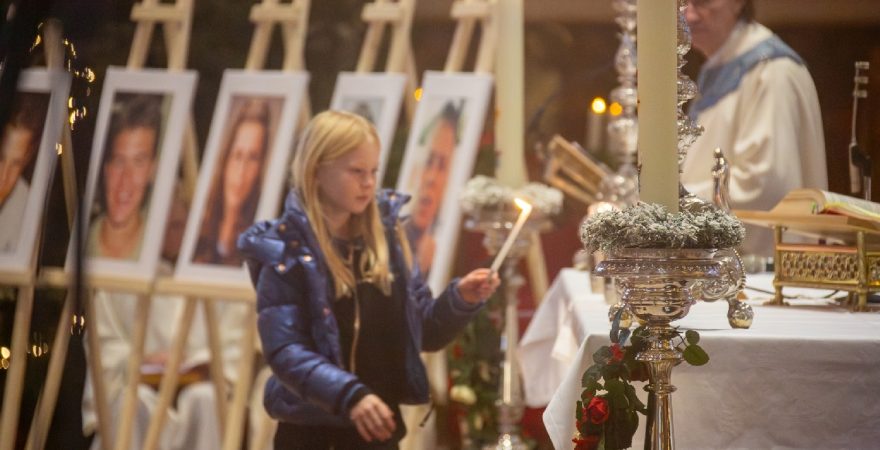 Pastoor Deraeve werd bijgestaan door Eric van Teijlinge. Muzikale bijdragen kwamen van Forever Young, dat in gepaste kledij enkele prachtige nummers ten gehore bracht. Jan Kwakman, Esther Veerman en Johan Koning voerden namens betrokkenen het woord en deelden hun persoonlijke verhaal en levensreis. Nabestaanden staken veertien kaarsen aan voor de overledenen en één extra kaars als teken van steun voor alle overige slachtoffers.